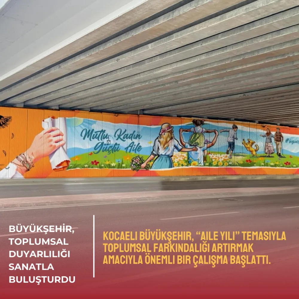 2025’in Cumhurbaşkanı Recep Tayyip Erdoğan tarafından “Aile Yılı” ilan edilmesi kapsamında birçok çalışma yürüten Kocaeli Büyükşehir Belediyesi şimdi de aile temasıyla kentin önemli noktalarını grafiti çalışmaları ile renklendiriyor. Bu kapsamda Kadın ve Aile Hizmetleri Dairesi Başkanlığı, aile kavramına dikkat çekmek, kadına yönelik şiddete karşı güçlü bir toplumsal duruş sergilemek ve farkındalık oluşturmak için önemli bir çalışma başlattı. Kent estetiğine de katkı sağlayacak grafiti çalışmaları kapsamında toplumsal bilinç oluşturulması amaçlanıyor.