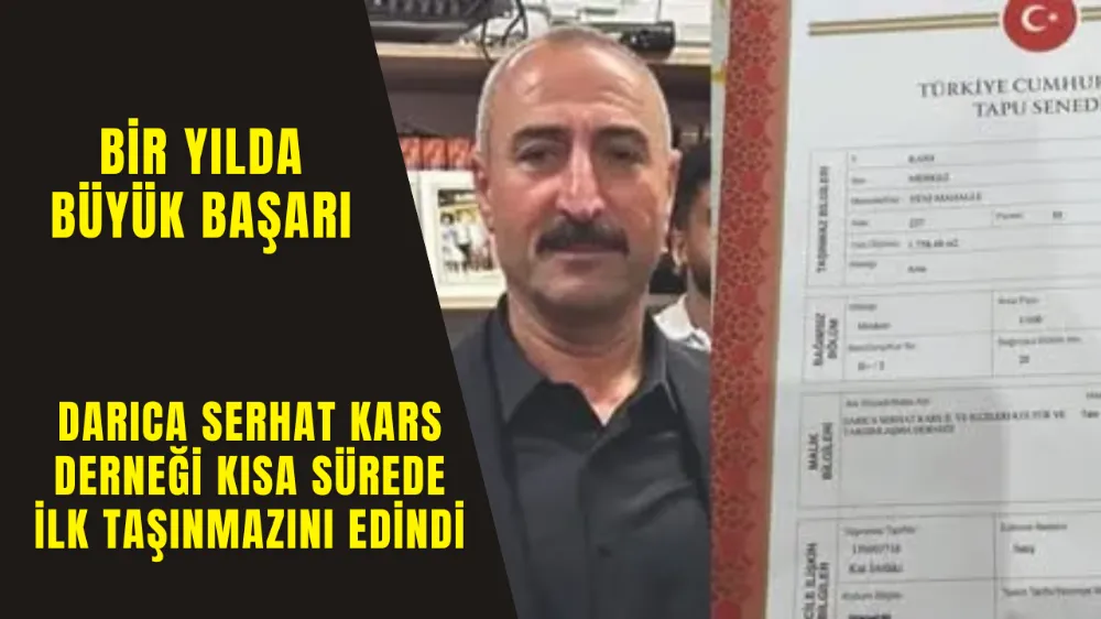 Darıca’da faaliyetlerini sürdüren Serhat Kars İli ve İlçeleri Kültür ve Yardımlaşma Derneği, kısa sürede gerçekleştirdiği çalışmalarla adından söz ettirmeye devam ediyor. Henüz kuruluşunun birinci yılı dolmadan önemli bir kazanım elde eden dernek, Kars’ta tapulu bir mülk satın alarak dernek adına ilk taşınmazını kazandı.