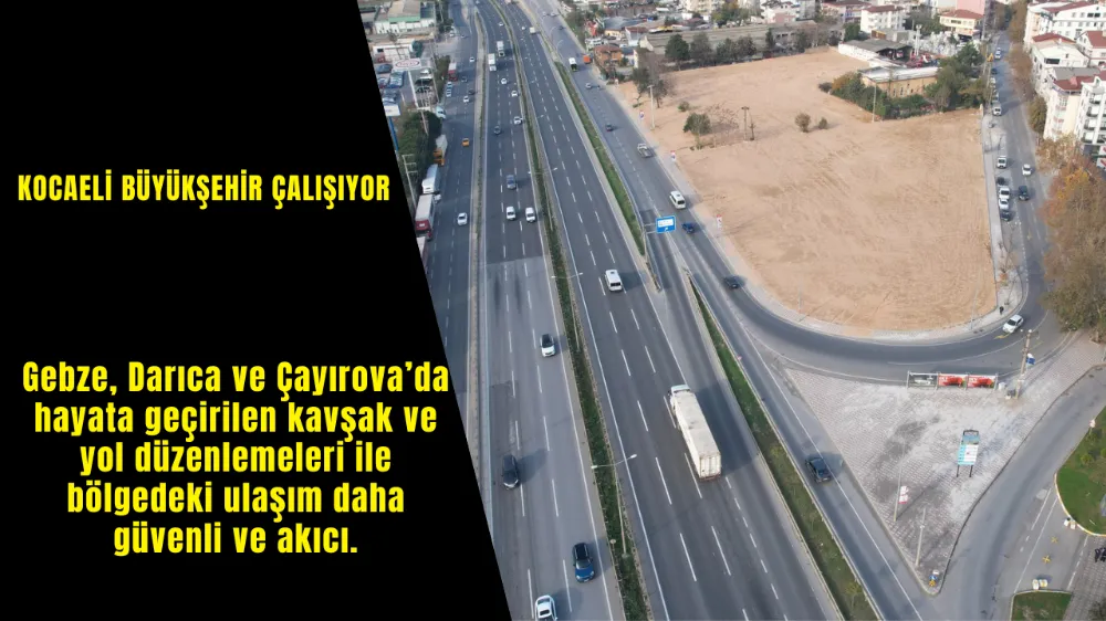 Kocaeli Büyükşehir Belediyesi, trafikte tıkanan damarları birer birer açmaya devam ediyor. Buna göre Gebze, Darıca ve Çayırova ilçelerinde ulaşımın daha modern, konforlu ve güvenli hale getirilmesi amacıyla yürütülen kavşak ve yol düzenlemeleriyle bölge trafiğinde önemli bir rahatlama sağlandı. Modern şehircilik vizyonu doğrultusunda hayata geçirilen projeler, yoğun güzergâhlarda akıcı trafik akışı oluşturarak, sürücülerin günlük ulaşım deneyimini önemli ölçüde iyileştirildi.