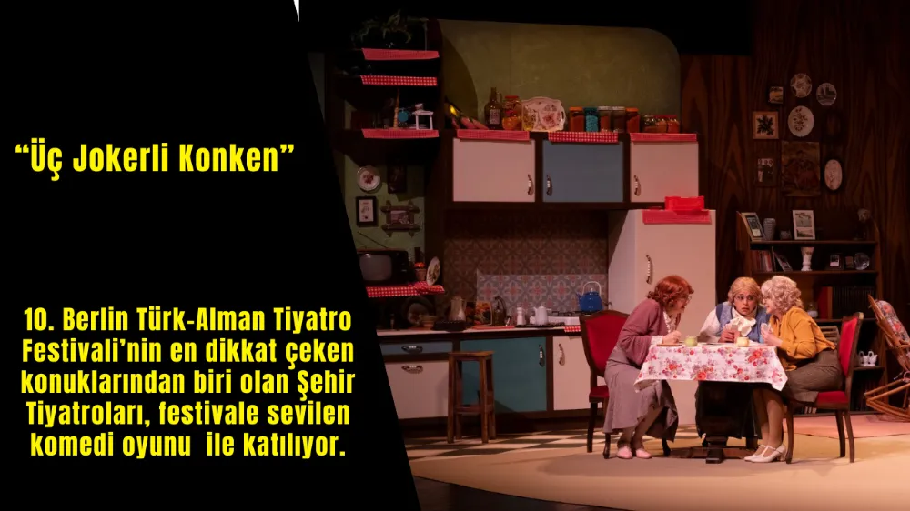 Kocaeli Şehir Tiyatroları, uluslararası alandaki vizyonunu güçlendirmeye devam ediyor. 10. Berlin Türk-Alman Tiyatro Festivali’nin en dikkat çeken konuklarından biri olan Şehir Tiyatroları, festivale sevilen komedi oyunu “Üç Jokerli Konken” ile katılıyor. Oyun; yıllardır birlikte konken oynayan üç yakın arkadaşın, mahallelerindeki bakım evinin kapanma tehlikesiyle yüzleşince verdikleri sıra dışı kararı konu alıyor. Sıcak atmosferi ve temposu yüksek anlatımıyla “Üç Jokerli Konken” dostluk, cesaret ve hayata tutunma gibi temaları mizahi bir dille izleyiciye aktarıyor.